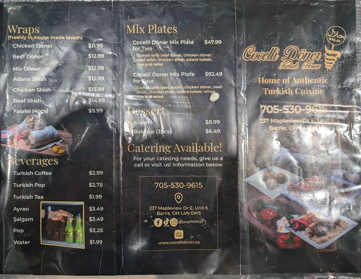 If you find yourself in Barrie, make sure to stop by Cocelli Doner Kebab House, where you’ll experience more than just a meal; you’ll find genuine hospitality, rich flavors, and a slice of Turkish culture—all served with a smile. Whether you're a lifelong fan of Turkish cuisine or a curious newcomer, Cocelli Doner is a must-try destination that promises unforgettable tastes and an inviting atmosphere. We assure you, one visit will never be enough!